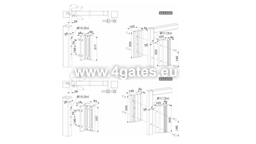 MAG6000: Minimali traukimo jėga: 6000 N (600 kg).