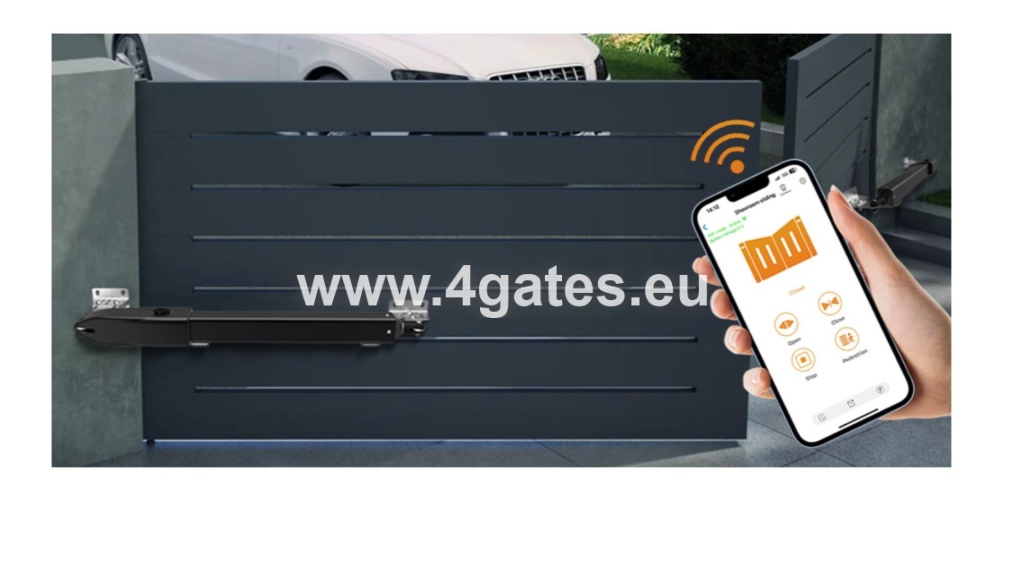 Divviru vārtu automātika 24V (iebūvēts WiFi) paredzēta vārtiem ar vienas vērtnes platumu līdz 3,0 m / 200 kg / Maksimālais atvēršanās leņķis 118º / paredzēti intensīvai lietošanai.